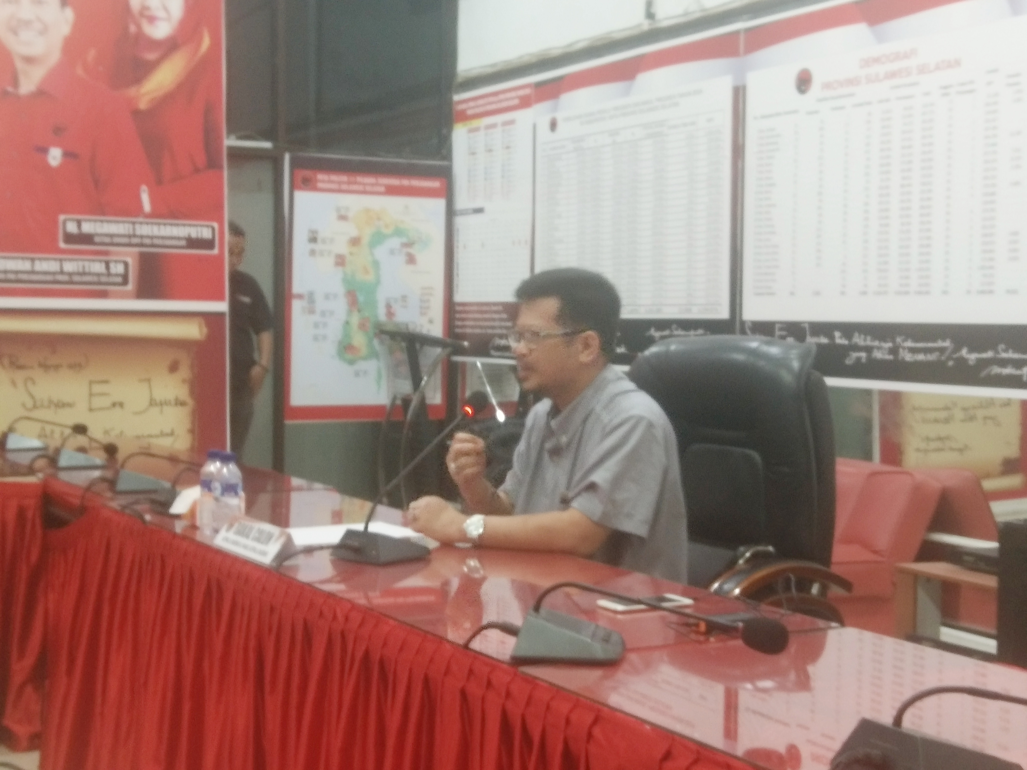 SUPERMAKSS.COM – Calon Walikota Makassar Irman Yasin Limpo mengikuti tahapan penjaringan Calon Walikota Makassar di Sekretariat DPD PDI Perjuangan Sulawesi Selatan Jalan Gunung Bawakaraeng Kota Makassar, Minggu (10/07/2017).