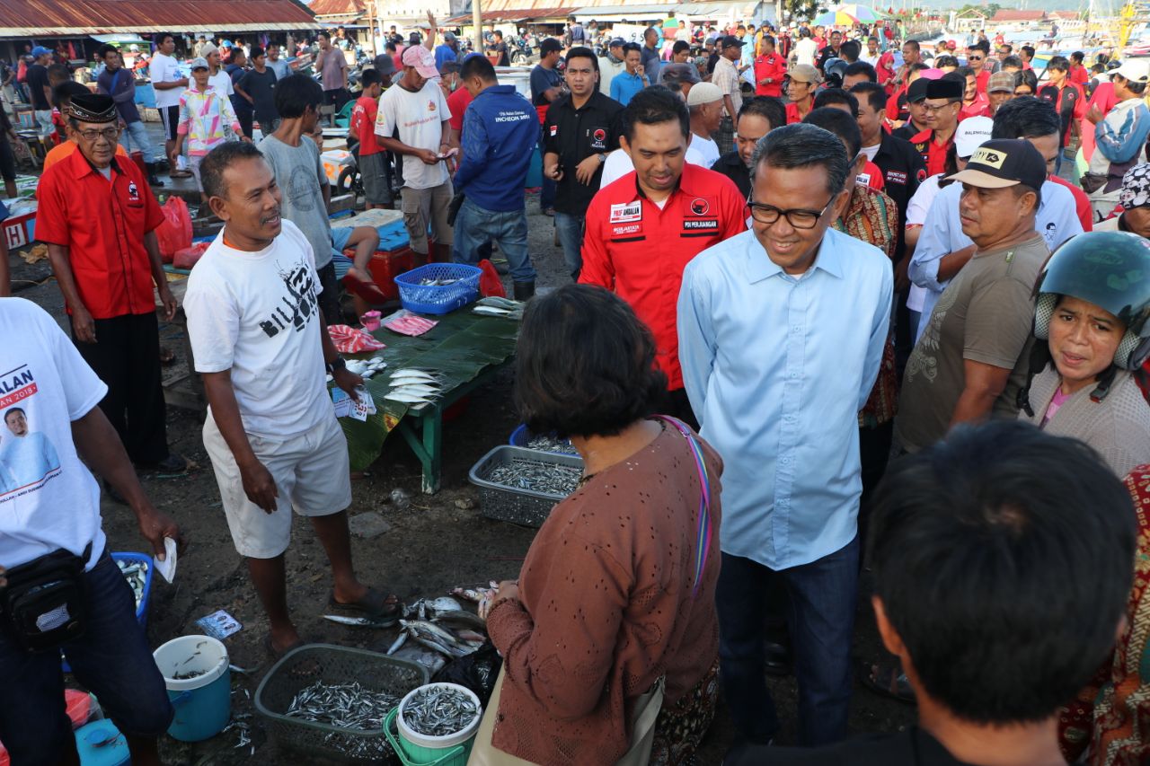Calon Gubernur Sulsel Nomor Urut 3, Prof Nurdin Abdullah dikerumuni ratusan nelayan dan pedagang ikan di Tempat Pelelangan Ikan Wara Timur, Kota Palopo.