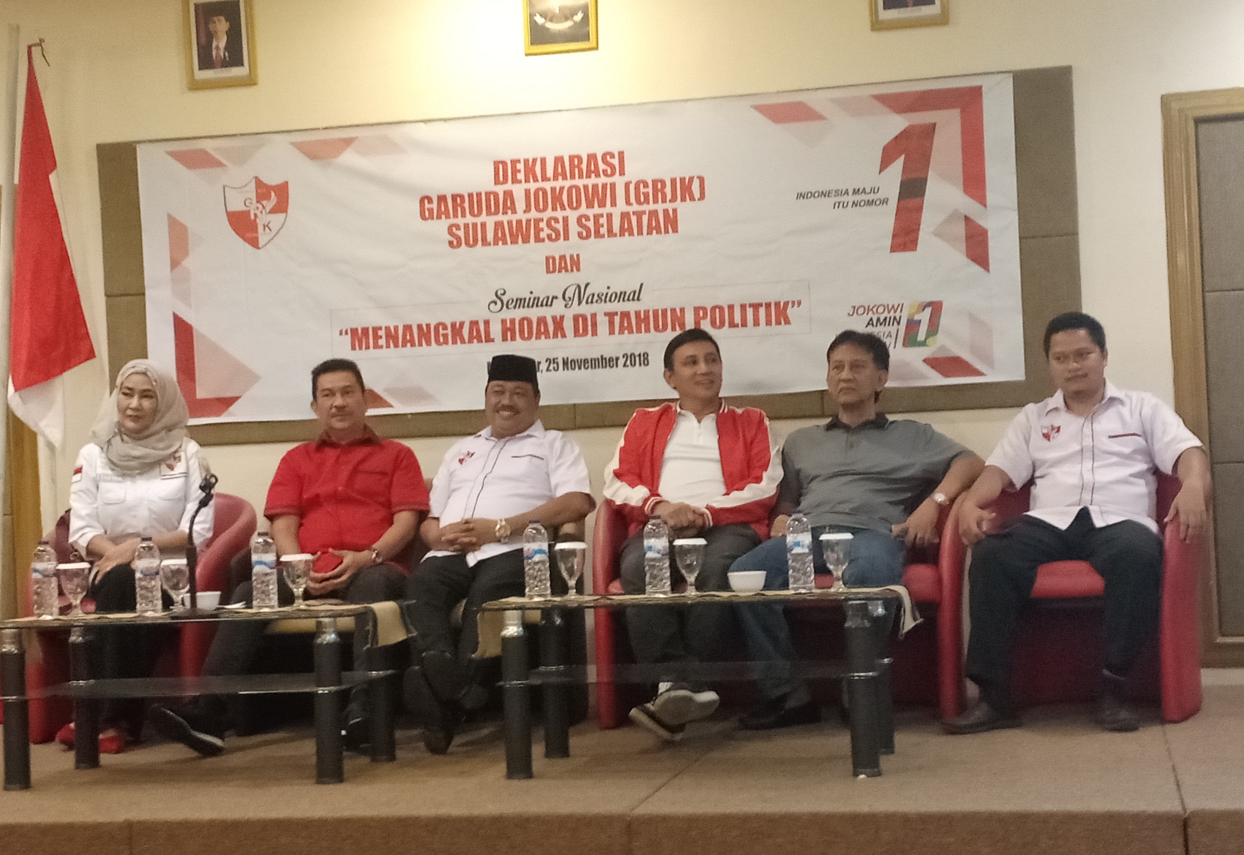 SUPERMAKSS.COM – Kembali di Sulawesi Selatan Relawan Jokowi – Ma’ruf dideklarasikan, relawan yang mengatasnamakan Garuda Jokowi (GRJK) yang akan turut serta bersama sama dengan relawan lainnya, dan partai pengusung, dideklarasikan di Hotel Jolin Makassar, Minggu, (25/11/2018).