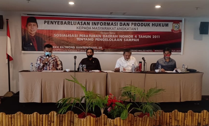SUPERMAKSS.COM – Perda No. 4 tahun 2011 tentang pengelolaan sampah disosialisasikan oleh legislator PDI Perjuangan Kota Makassar Mesakh Raymond Rantepadang didepan perwakilan warga kec. Panakkukang dan Manggala di Hotel Grand Maleo Jl. Pelita Kota Makassar, Minggu (16/08/2020).
