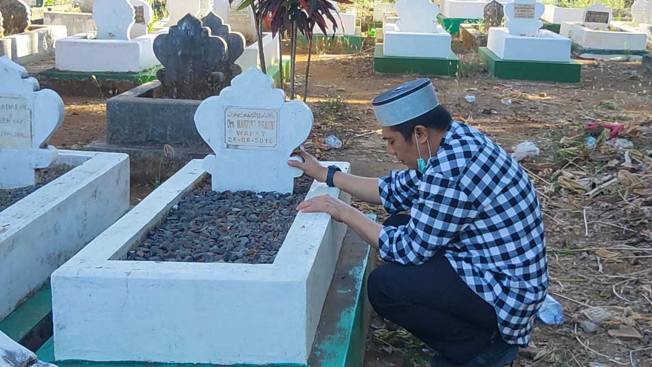 Makassar — Bakal Calon Wali Kota Makassar, Syamsu Rizal alias Deng Ical, melakukan ziarah ke makam ayahnya, almarhum Marzuki Ibrahim, di Pekuburan Permas, Kelurahan Kalegowa, Kecamatan Somba Opu, Kabupaten Gowa, Senin (31/8/2020).