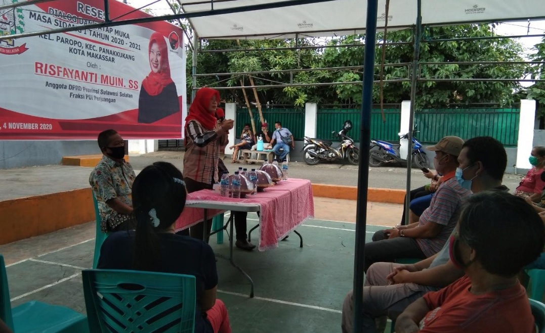 SUPERMAKSS.COM – Dimasa pandemi Covid 19 dimana sampai saat ini vaksin sementara masih berproses, maka untuk menghindarinya maka tiga hal yang harus selalu kita perhatikan, rajin cuci tangan, jaga jarak dan yang ketiga selaluki pakai masker, hal ini disampaikan oleh Risfayanti Muin anggota DPRD Provinsi Sulawesi Selatan dari Fraksi PDI Perjuangan saat melakukan kegiatan resesnya di Kel. Paropo Kec. Panakkukang Kota Makassar, Rabu (04/11/2020).