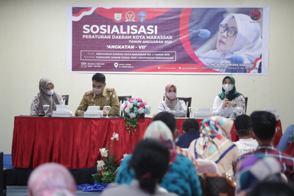 SUPERMAKSS.COM – Srikandi Banteng Makassar yang juga Ketua DPC PDI Perjuangan Kota Makassar Ir. Hj. Andi Suhada Sappaile (F-PDIP) menggelar Sosialisasi Peraturan Daerah (Perda) Kota Makassar No. 2 Tahun 2016 Tentang Tanggung Jawab Sosial dan Lingkungan Perusahaan, Selasa (11/05/2021) di Hotel Asyira Jalan Maipa Kota Makassar.