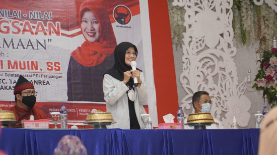 SUPERMAKSS.COM – Pancasila adalah satu nilai yang hidup itu yang disebut sebagai filosofische groundslaag Indonesia merdeka. Sebagai falsafah, Pancasila adalah sumber nilai dalam kehidupan berbangsa dan bernegara, hal ini disampaikan oleh Risfayanti Muin anggota DPRD Provinsi Sulsel saat memberikan pengantar Nilai-nilai Kebangsaan dan Keagamaan di Hotel Sarison Jl. Perintis Kemerdekaan Kota Makassar, Minggu (18/07/2021).