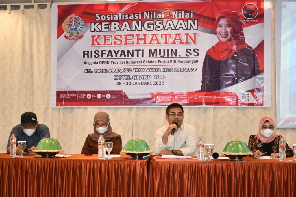 SUPERMAKSS.COM – Kalau kita bersatu dan bergotongroyong lawan Covid 19, insyaallah kita akan mampu mengatasi masalah virus ini, ungkap Risfayanti Muin didepan peserta sosialisasi Nilai-nilai Kebangsaan “Kesehatan” di Hotel Grand Puri Tamalanrea Makassar, Minggu 30 Januari 2022.