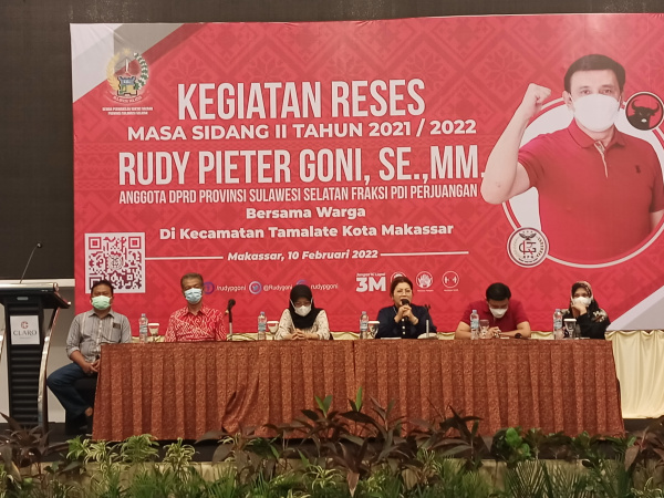 Makassar – Kehadiran anggota DPR RI Komisi VIII Ina Ammania dari Fraksi PDI Perjuangan pada kegiatan Reses kelima Rudy P Goni anggota DPRD Provinsi Sulsel Masa Sidang ll Tahun 2021/2022 bersama Masyarakat Kec. Tamalate di Claro Hotel Makassar, Kamis 10 Februari 2022 dimanfaatkan oleh masyarakat untuk mempertanyakan persoalan bantuan sosial berupa PKH dan BPNT dimasa pandemi Covid 19.