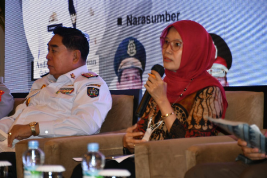 Risfayanti Muin Anggota DPRD Provinsi Sulsel dari PDI Perjuangan Bersama dengan Sekda Provinsi Sulsel Saat Kegiatan Rakor TPPO di Claro Hotel Makassar