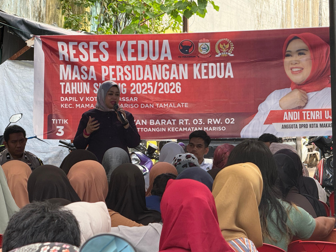 MAKASSAR – Anggota DPRD Kota Makassar dari Fraksi PDI Perjuangan, Andi Tenri Uji Idris, menggelar Reses Kedua Masa Persidangan Kedua Tahun Anggaran 2025/2026. Titik ketiga pelaksanaan reses tersebut dipusatkan di Jalan Flamboyan Barat, Kelurahan Mattoangin, Kecamatan Mariso, Jumat (13/2/2026).