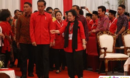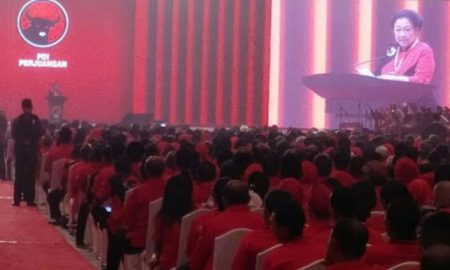 Ribuan kader takzim menyimak pidato Ketua Umum PDI Perjuangan Megawati Soekarnoputri. Ketika Megawati menyebut militansi kader dengan istilah “biar gepeng, asal banteng”,...