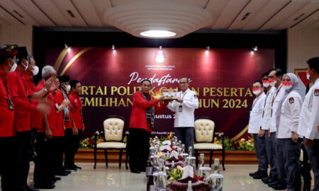 Jakarta – Ketua Umum DPP PDI Perjuangan (PDIP) Megawati Soekarnoputri dan Sekretaris Jenderal Hasto Kristiyanto secara resmi mendaftarkan partainya untuk menjadi sebagai...