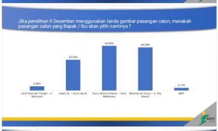SUPERMAKSS.COM – Insert Institut merilis hasil survei 4 Pasangan Calon (Paslon) pada Pemilihan Kepala Daerah (Pilkada) Kabupaten Bulukumba, Senin (30/11), di Black...